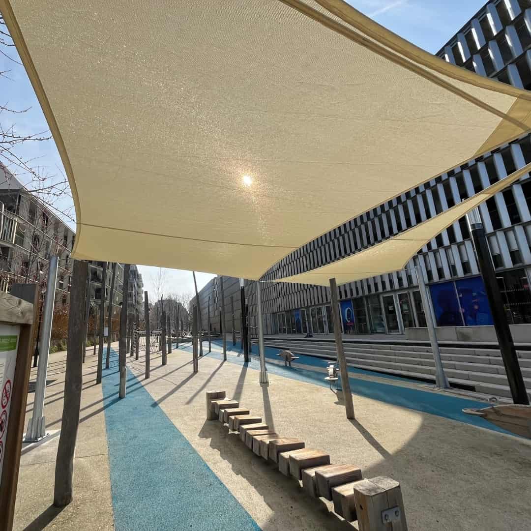 Face à ces enjeux, la toile tendue s’impose comme la solution technique idéale pour intégrer des îlots de fraîcheur à vos espaces sportifs ! .